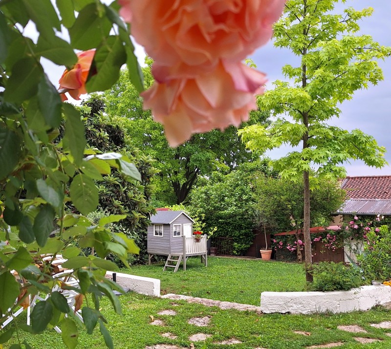 La proprietà ha un giardino fruibile dagli ospiti e un'esposizione sud che permette di godere di una vista panoramica sulle colline e sulla campagna.